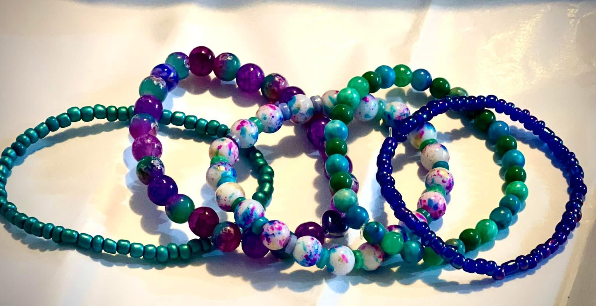 Handcrafted glass bead bracelets featuring vibrant colors and playful details—perfect for stacking or wearing solo.